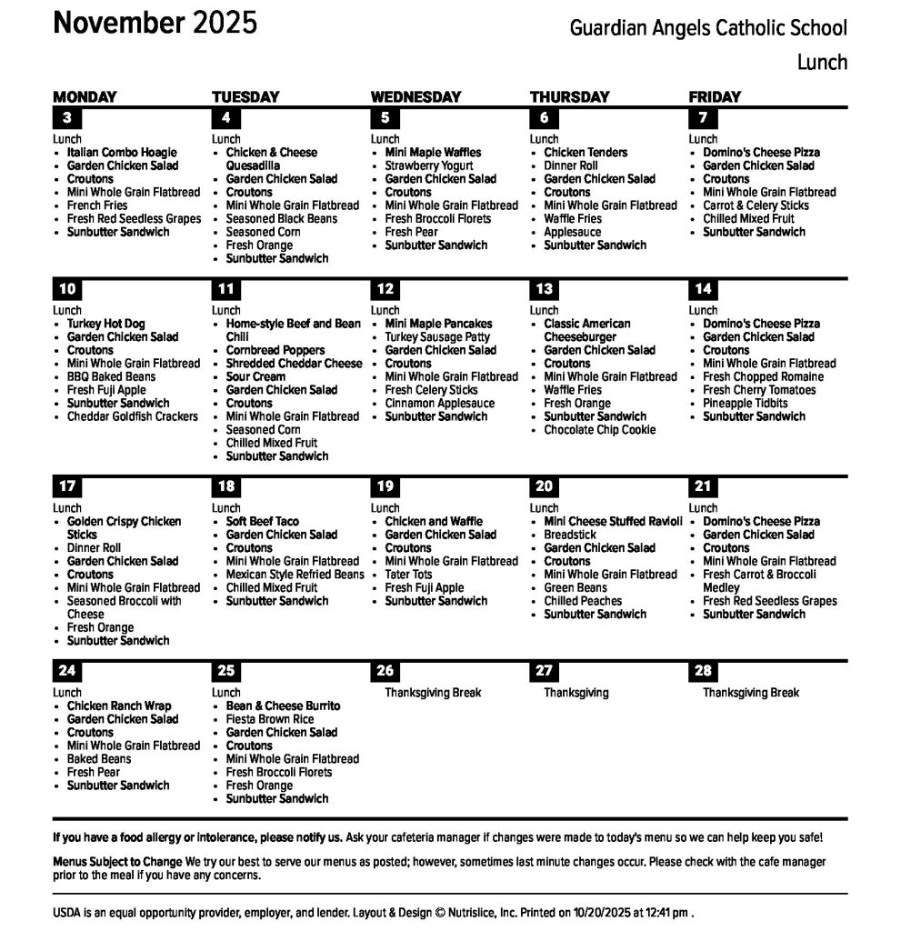 For all lunch menu and ordering questions, please contact Chef Rhonda at glasgowr@gaschool.com.