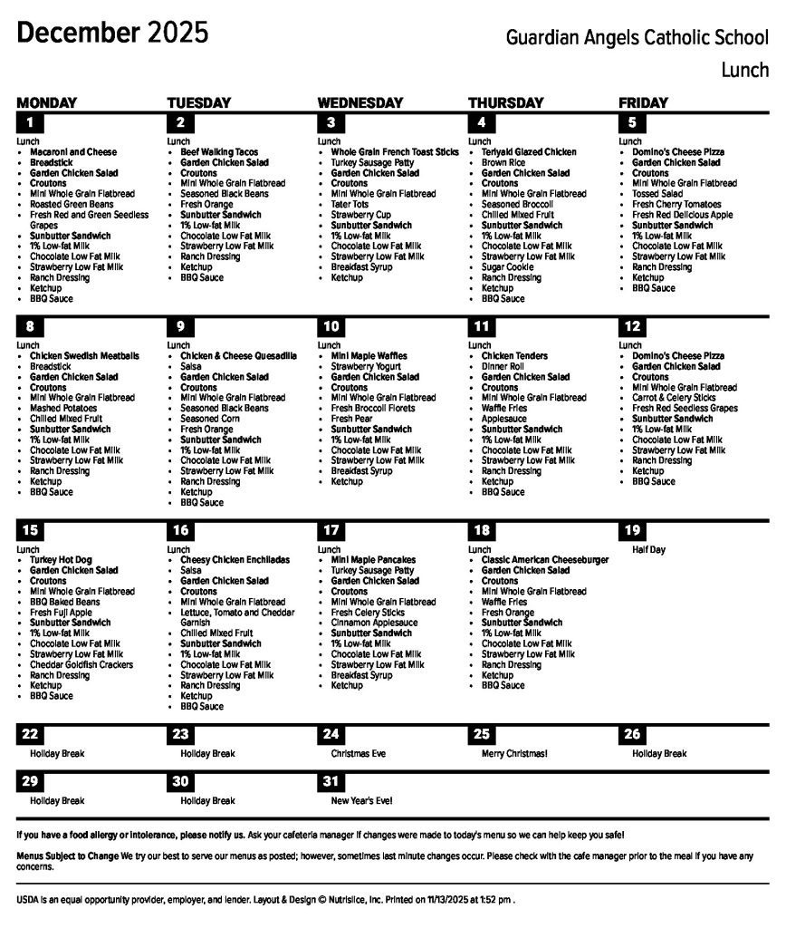 For all lunch menu and ordering questions, please contact Chef Rhonda at glasgowr@gaschool.com.